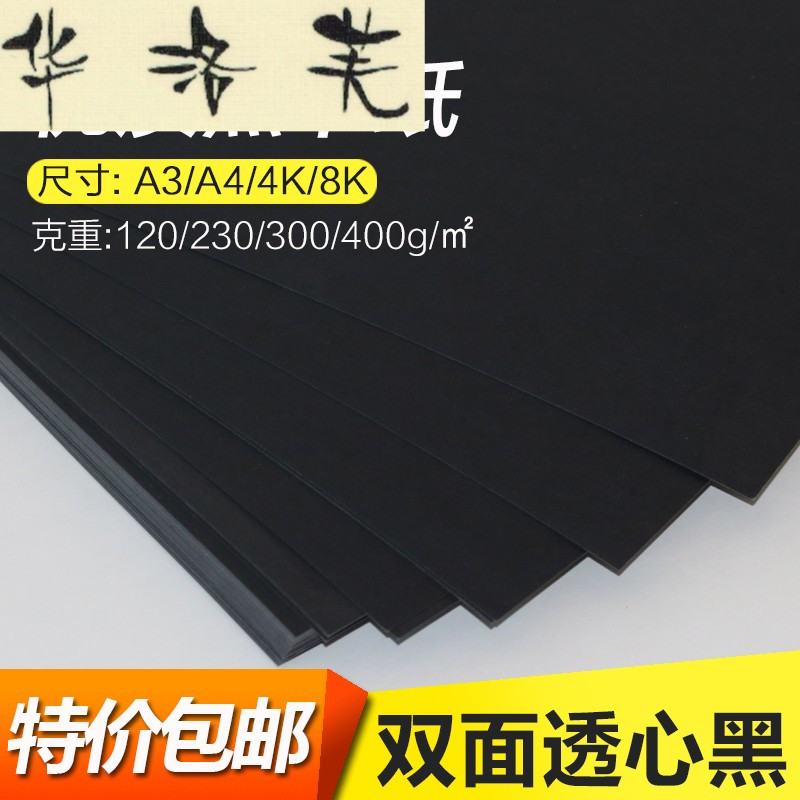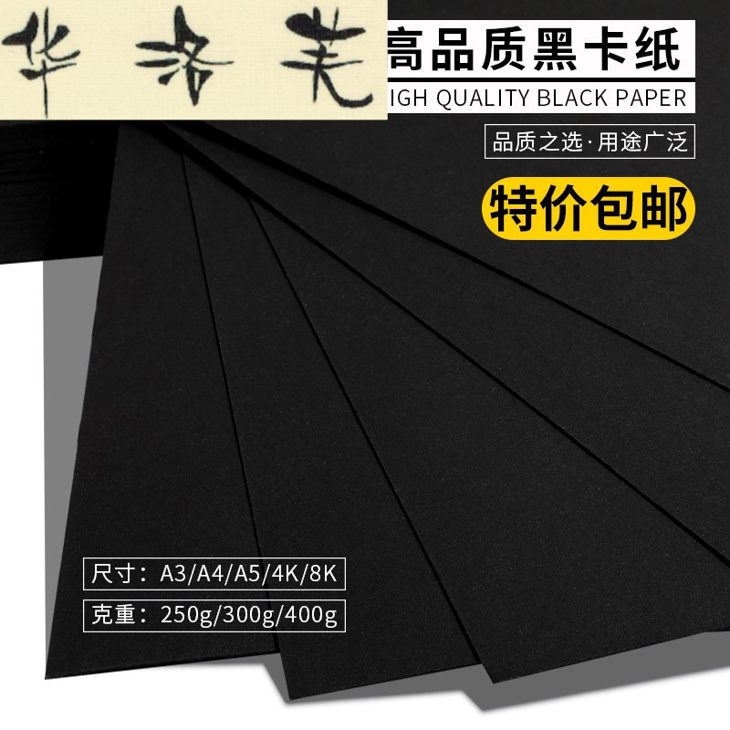 黑卡纸A4\/A3\/4K四开8K黑色卡纸厚硬手工