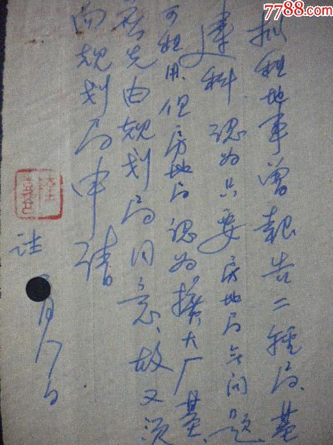 手写钢笔字老版有红图章纵繁体字尺规:长