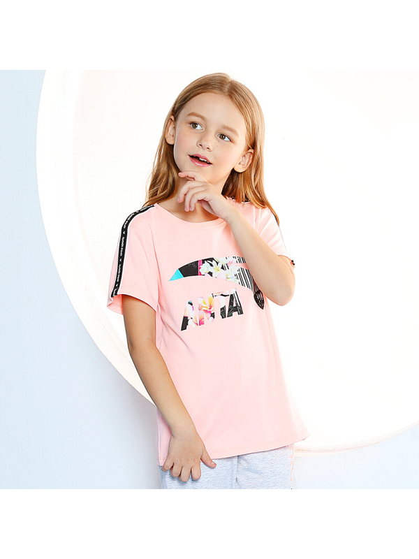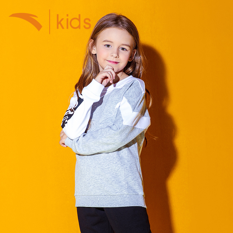 安踏童装女童卫衣2018春季新款大童女装套头T恤时尚印花打底衫DF