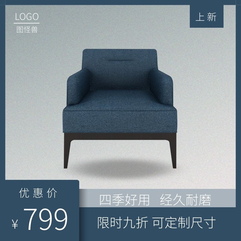 沙发家具渐变深蓝极简风主图直通车
