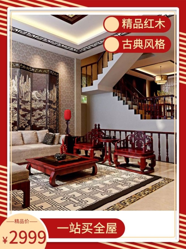 古典家具红色简约淘宝主图直通车