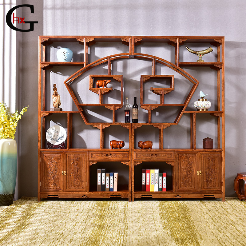 小菲象 非洲花梨木扇形博古架 中式红木家具实木多宝格古玩置物架