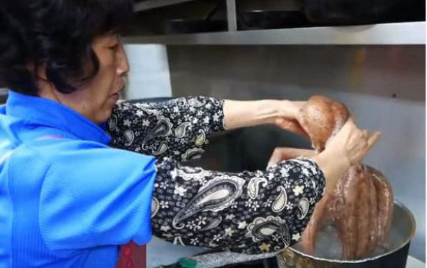 大妈三万韩元买了只大章鱼,直接放沸水里,5
