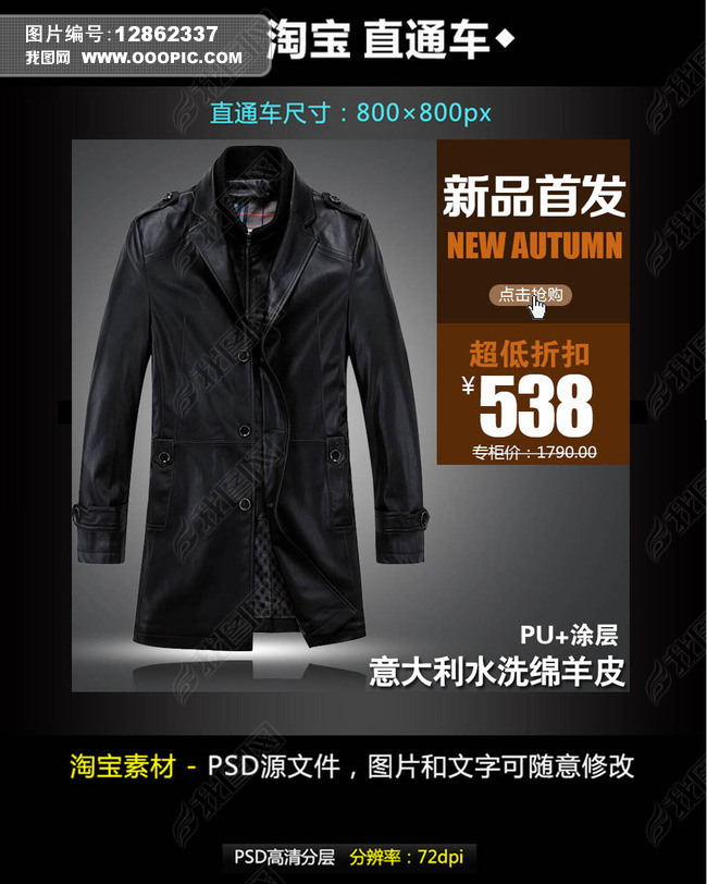 淘宝皮衣推广海报[PSD,淘宝素材]