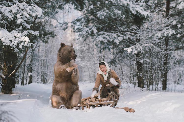 1270斤大棕熊与人和谐相处, 上演现实版“美女与野兽”
