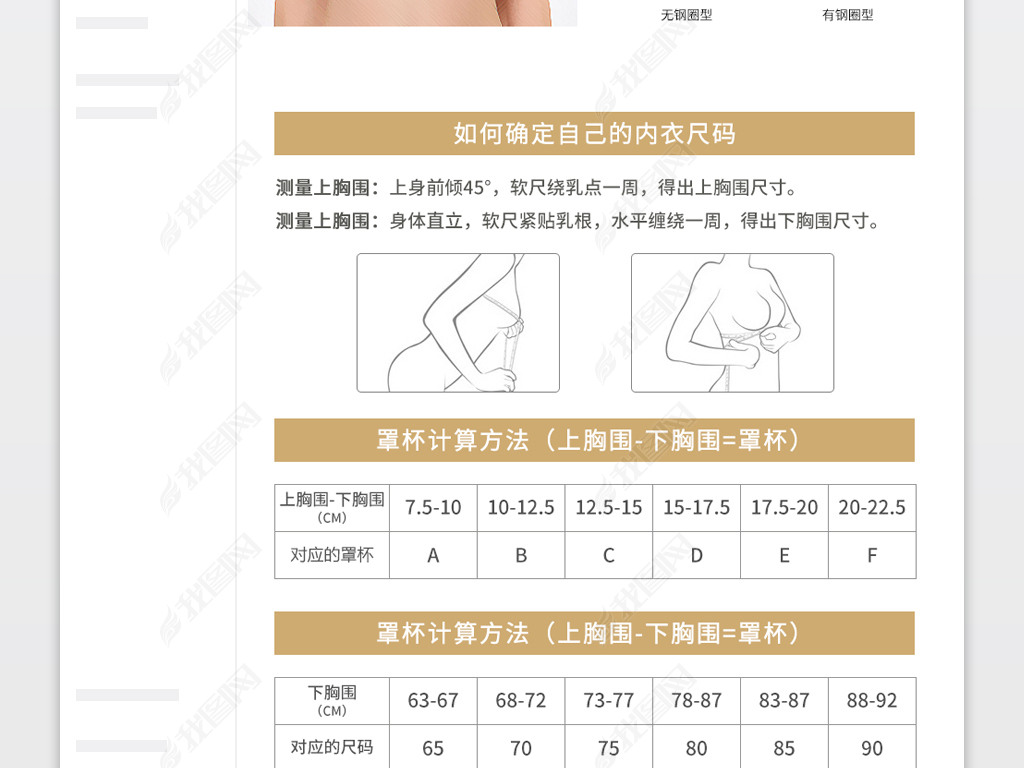 通用电商女装内衣文胸详情页产品信息尺码表