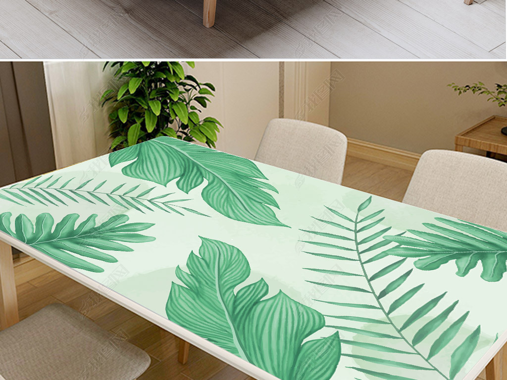 北欧风手绘水彩叶子大理石纹麋鹿桌布茶几垫