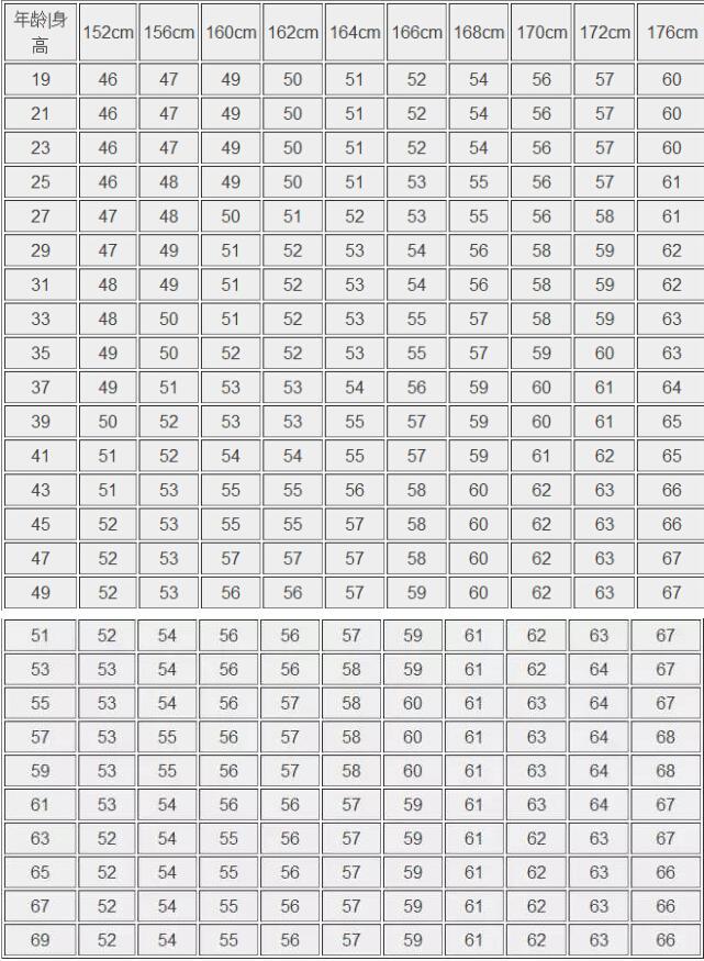 15-75岁女性标准体重对照表,你拉低小仙女的平均体重了吗?