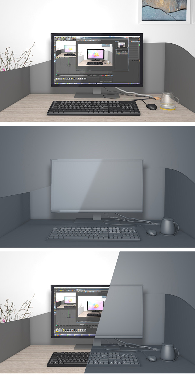 C4D练习 桌面小练习 电脑 键盘 工作场景