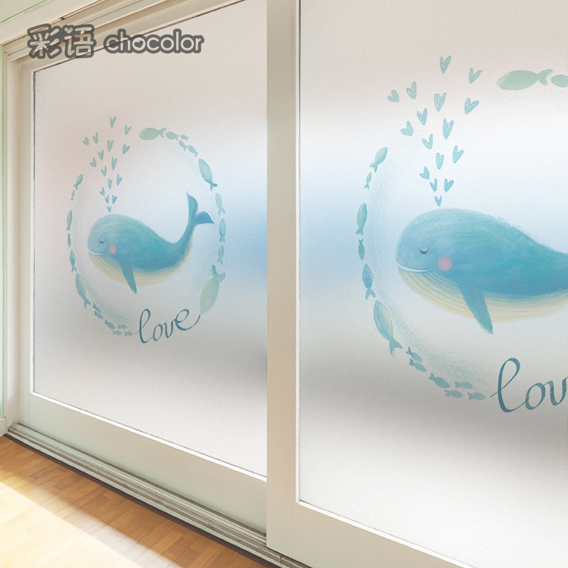 吉朵芸 进口欧式彩绘玻璃贴膜透光不透明窗户贴纸卫生间玻璃贴纸磨砂窗纸 海豚45cm宽*100cm长---可加长买