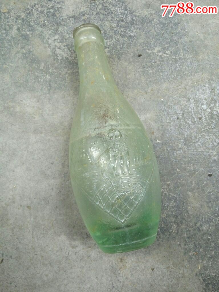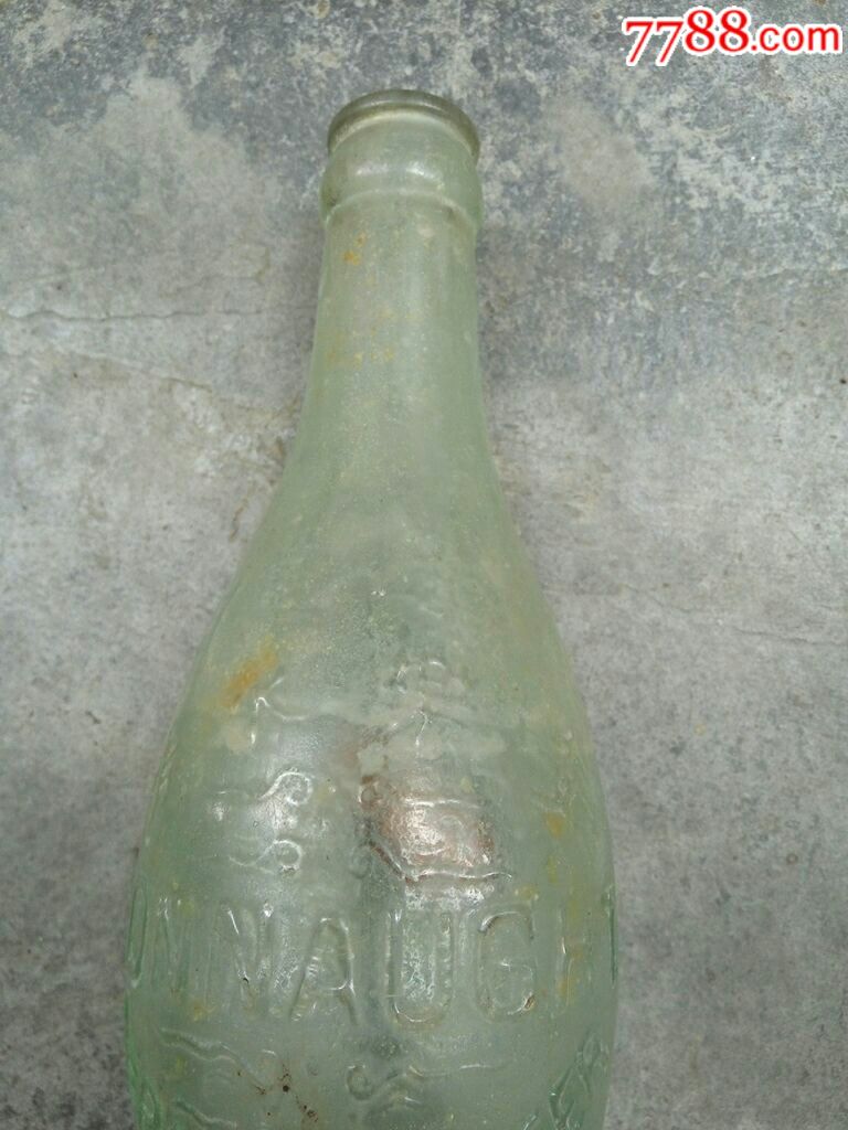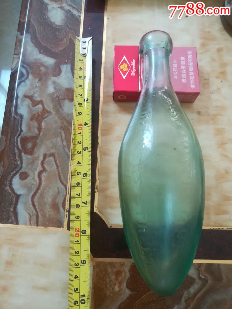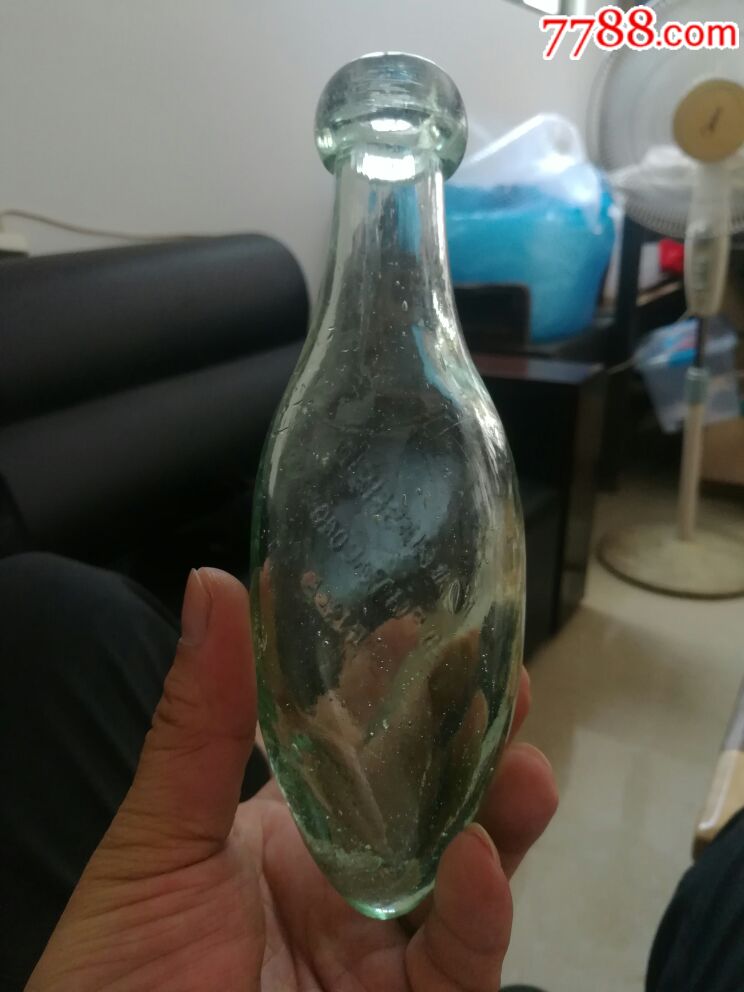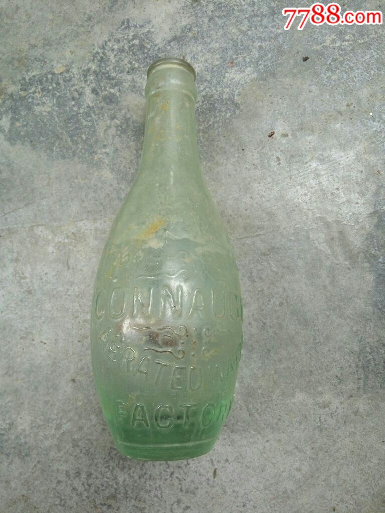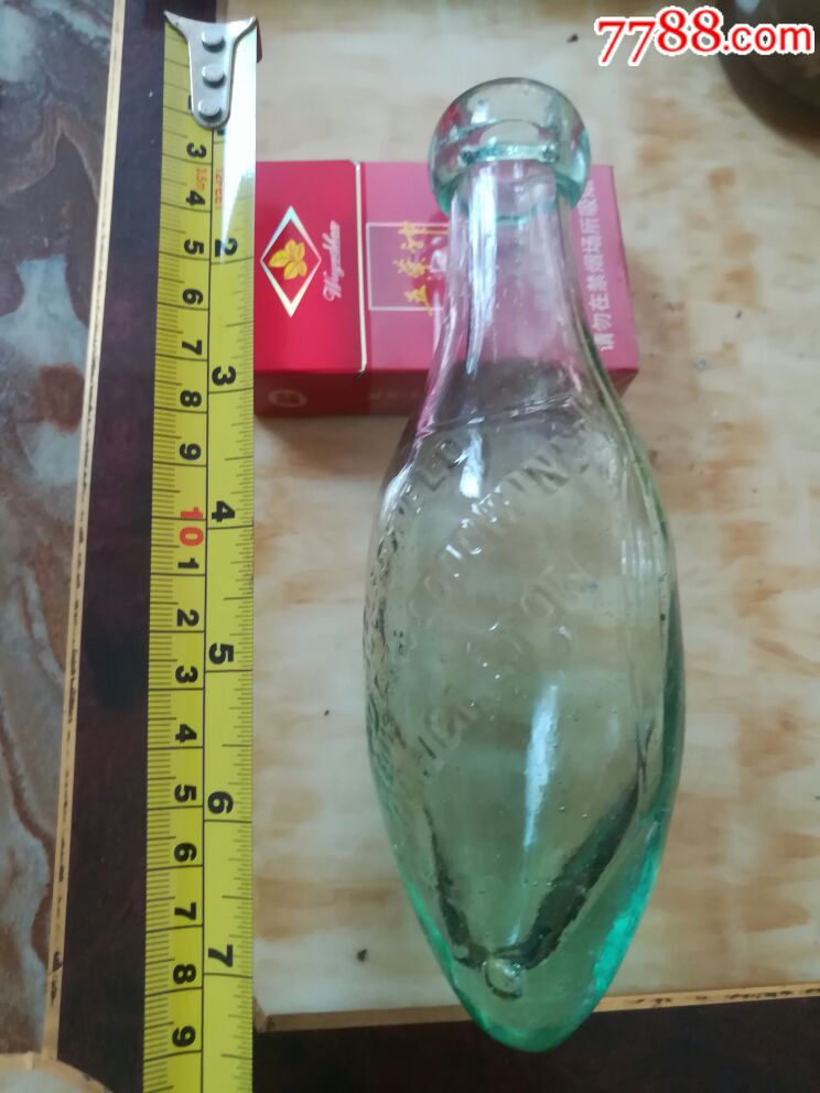 中英文图案的民国粤东安乐水房榄型汽水瓶