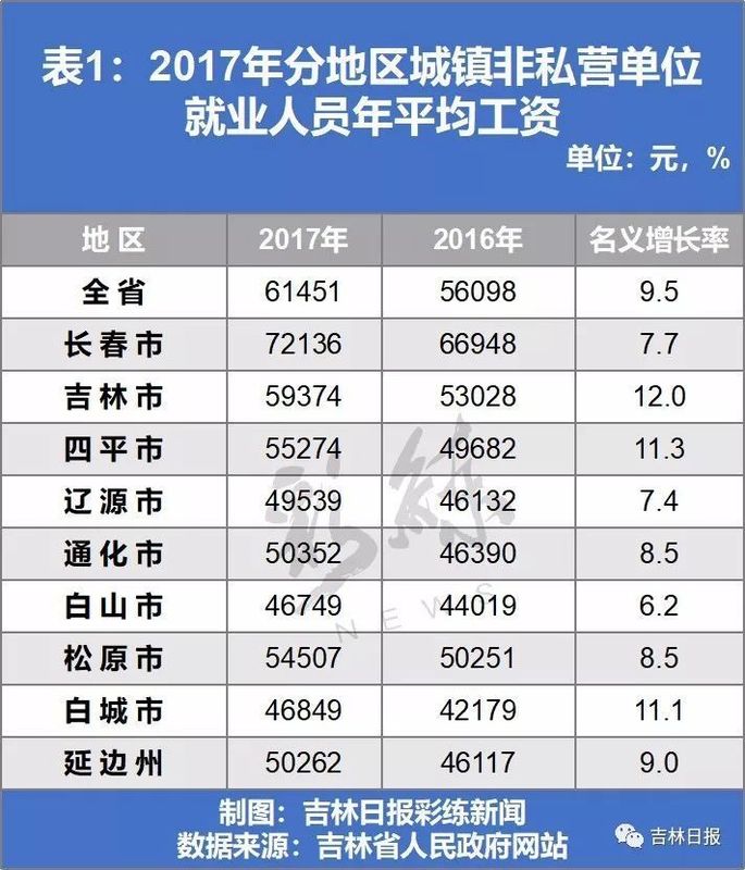 吉林市平均工资名义增长率竟然全省第一!