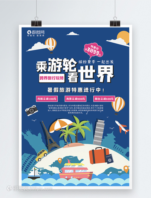 手绘特价游轮旅游海报