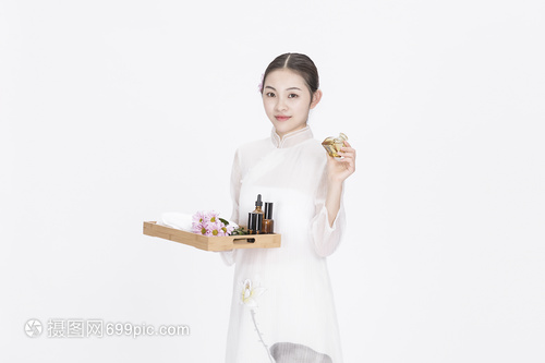 拿着精油的按摩师