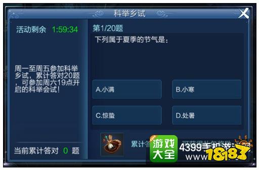 倩女幽魂手游科举乡试系统介绍 科技系统