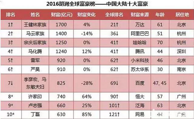 中国十大富豪排行榜:中国富豪都住哪?身价