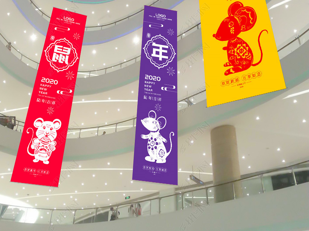 2020时尚个性扁平化商场新年元旦吊旗图