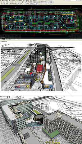 商业街建筑草图SU模型含CAD平面图毕业设计作业