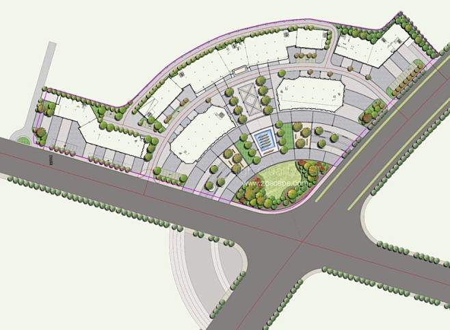 商业街彩色平面-商业步行街景观设计平面图PSD下载_PSD彩平_ZOSCAPE