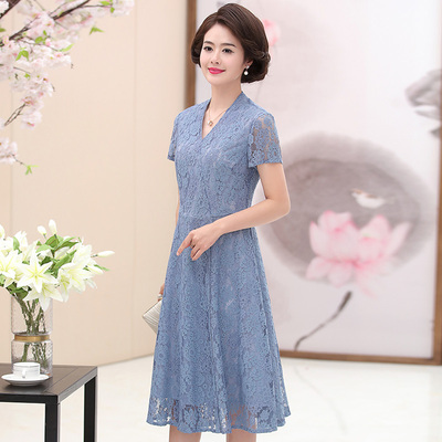 新款长袖女装大码拼接蕾丝妈妈装连衣裙