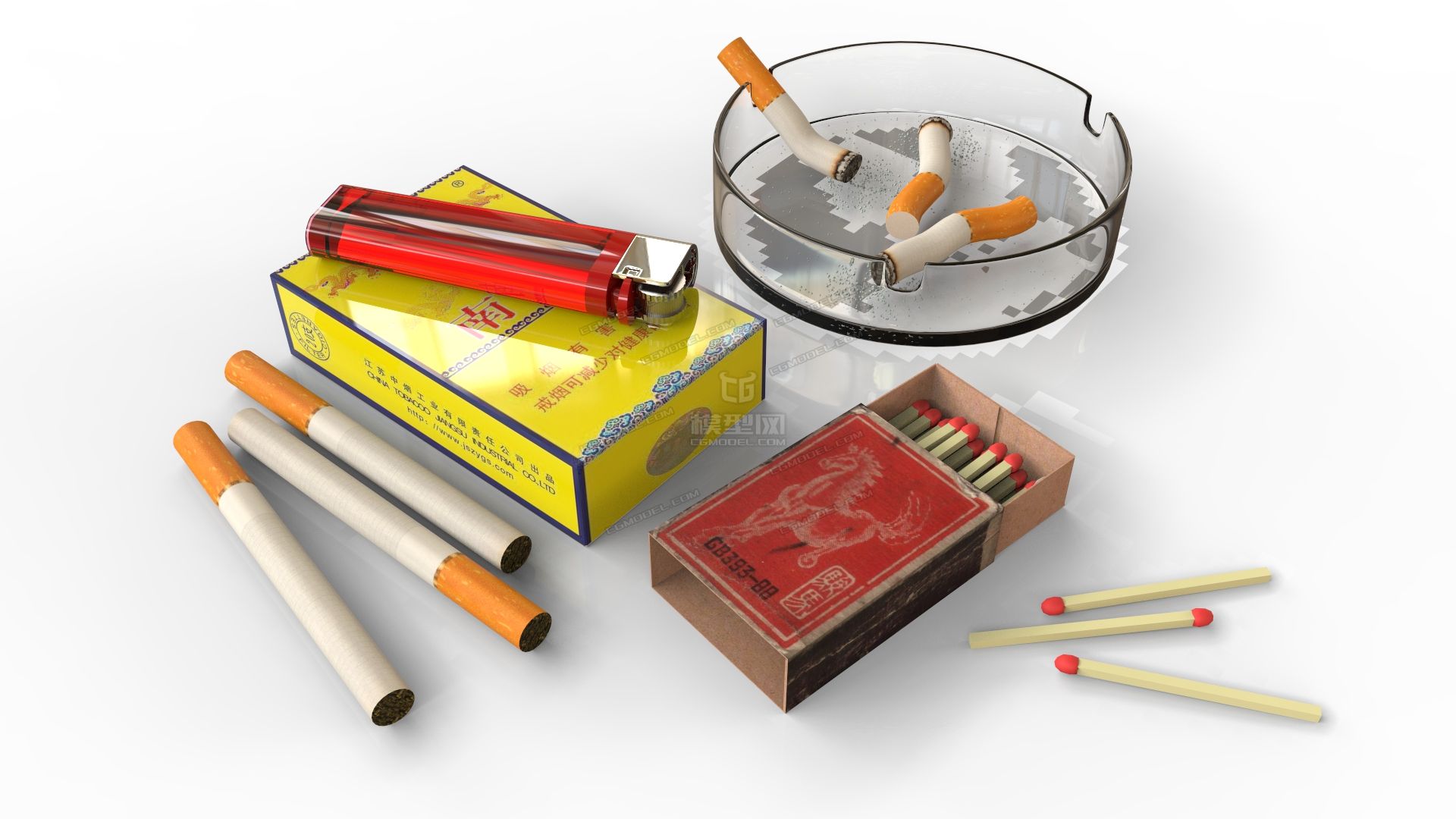 香烟黄南京95至尊写实火柴烟头打火机烟灰