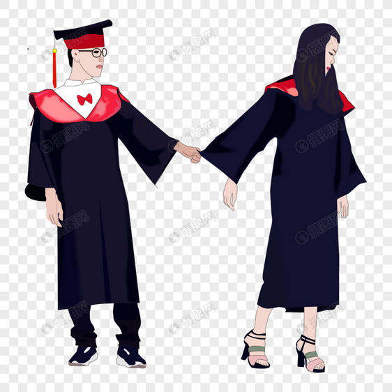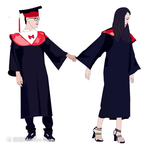 卡通手绘毕业季分手季穿着毕业服装的男孩