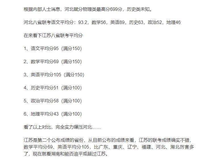 八省联考河北成绩出炉,能和江苏掰掰手腕