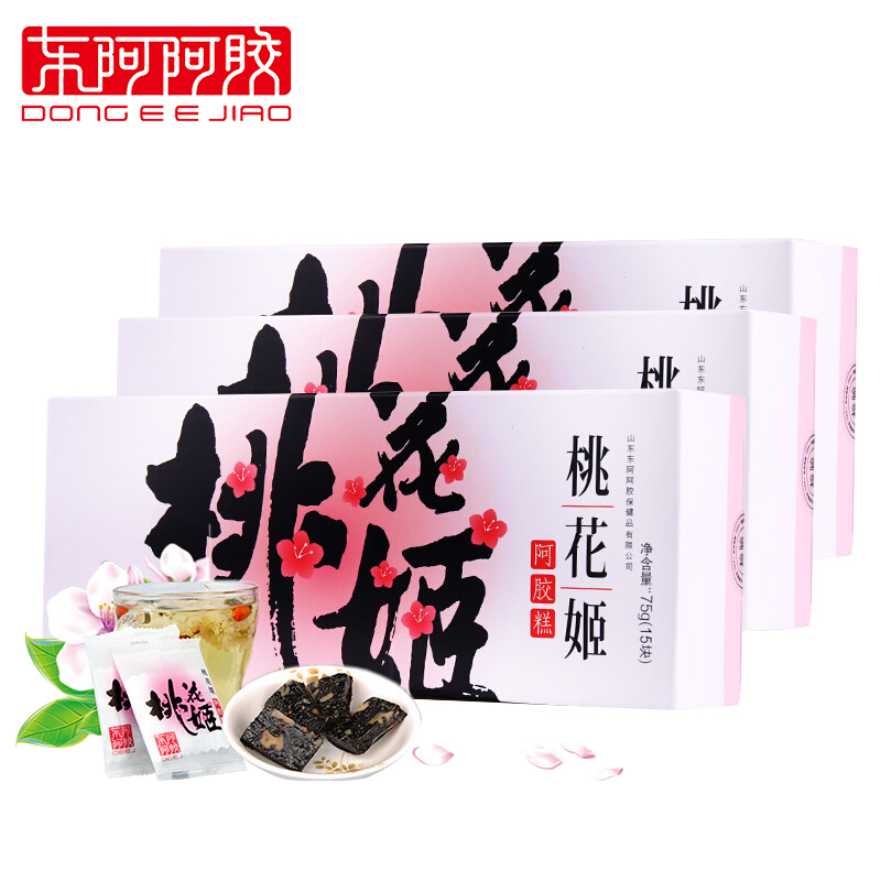 东阿阿胶桃花姬阿胶糕即食75g*3盒固元膏