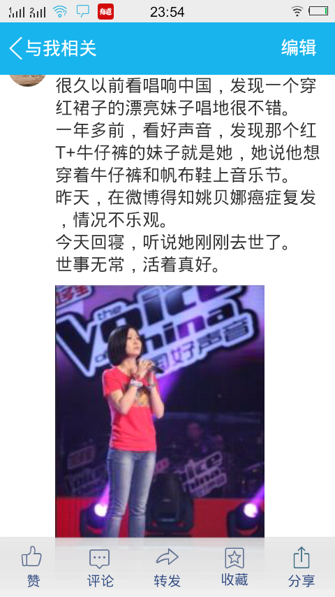 如何看待姚贝娜去世后,微博空间朋友圈等