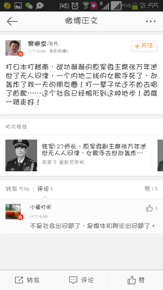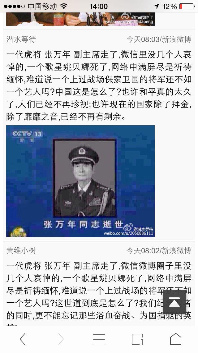 虎将张万年打了一辈子仗还不如姚贝娜唱