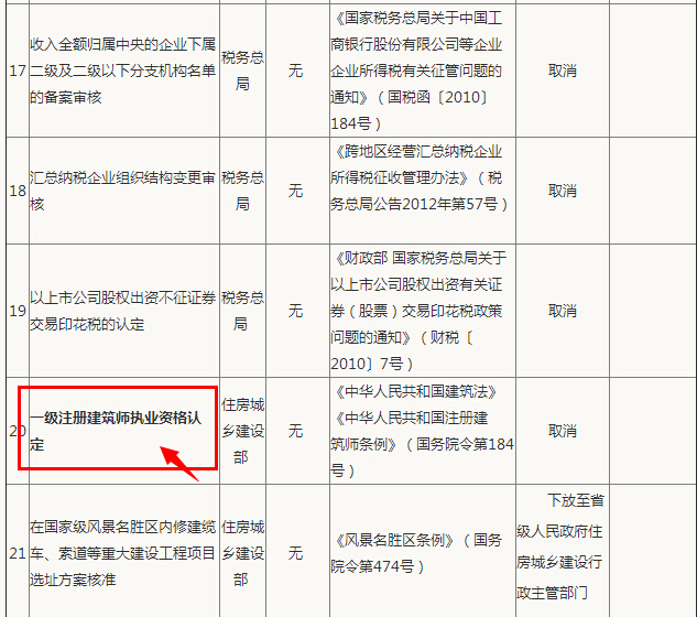 国务院取消一级注册建筑师执业资格认定?