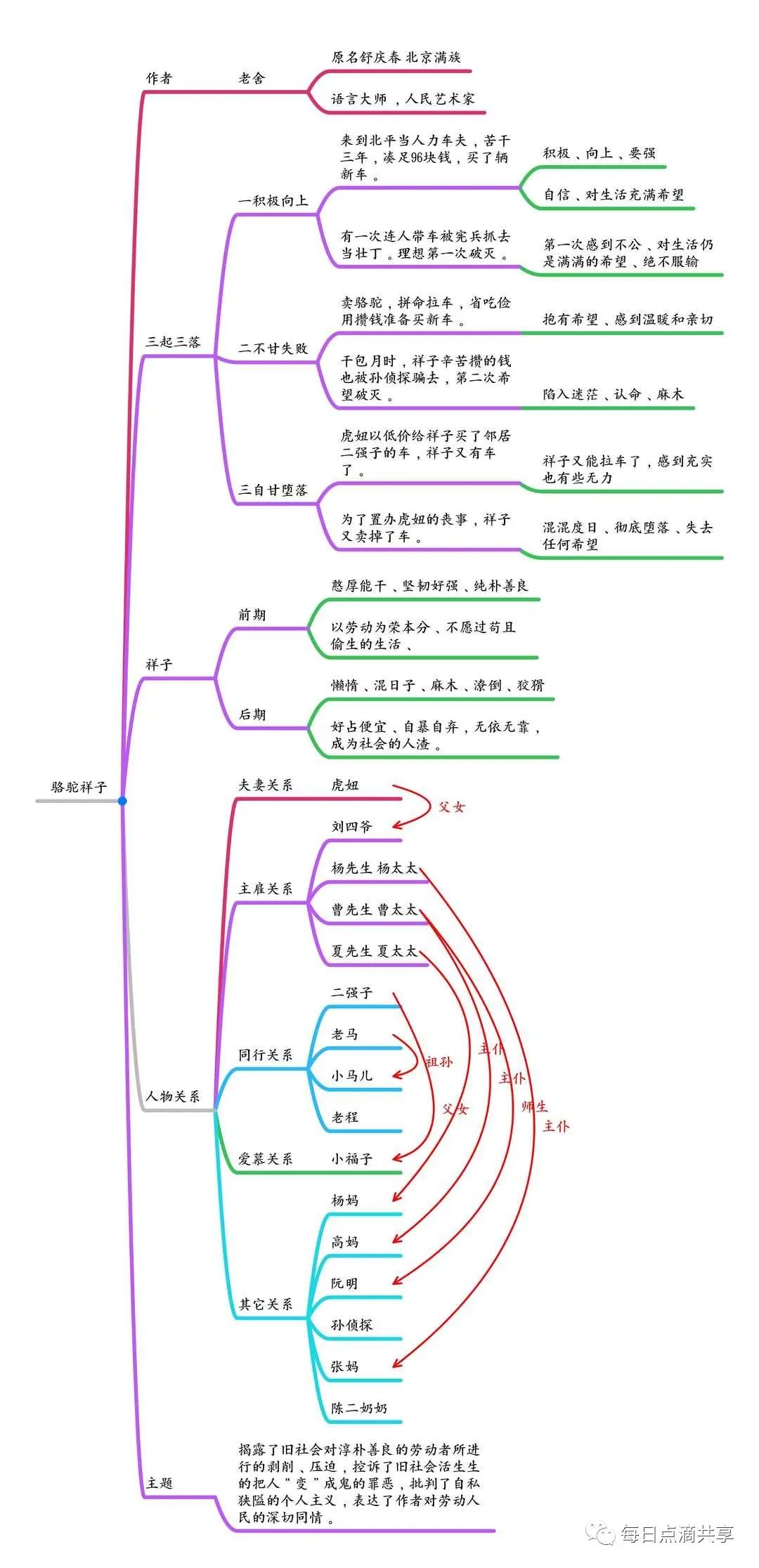 《骆驼祥子》人物关系图,内容梗概思维导图