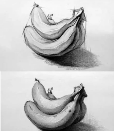 串三个未开封、 未剥皮成熟香蕉,素描矢量图