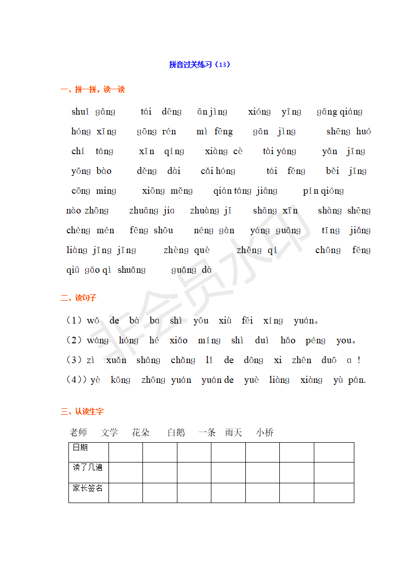 一年级上册人教版汉语拼音拼读练习