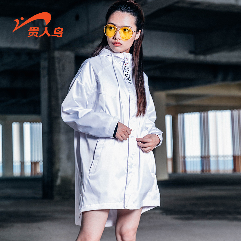 贵人鸟女风衣2018新款连帽字母印花套头