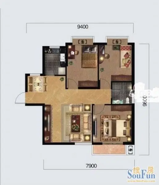 建业时光原著两房变三房 臻品户型赏析_