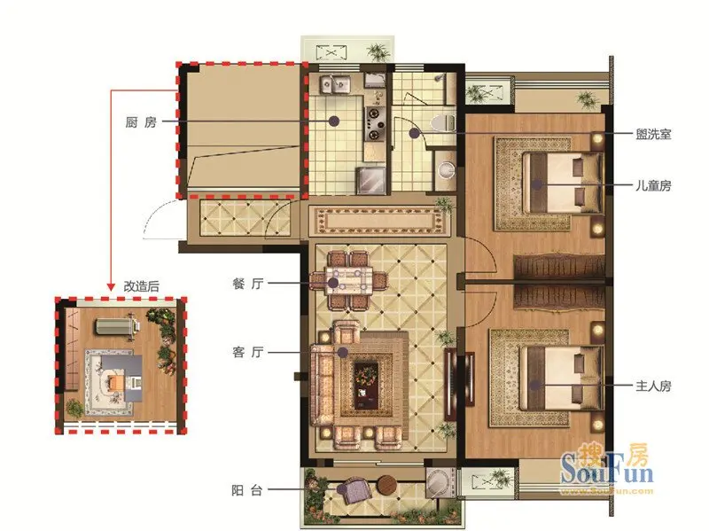 两房变三房。