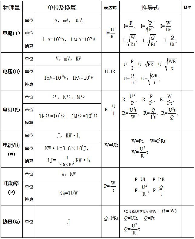 初中物理电学公式大全,中考物理计算题必备,需熟记