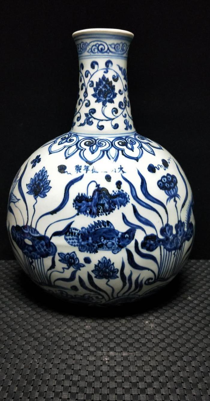 清青花山水庭院葫芦月光瓶 - 中华古玩网 -