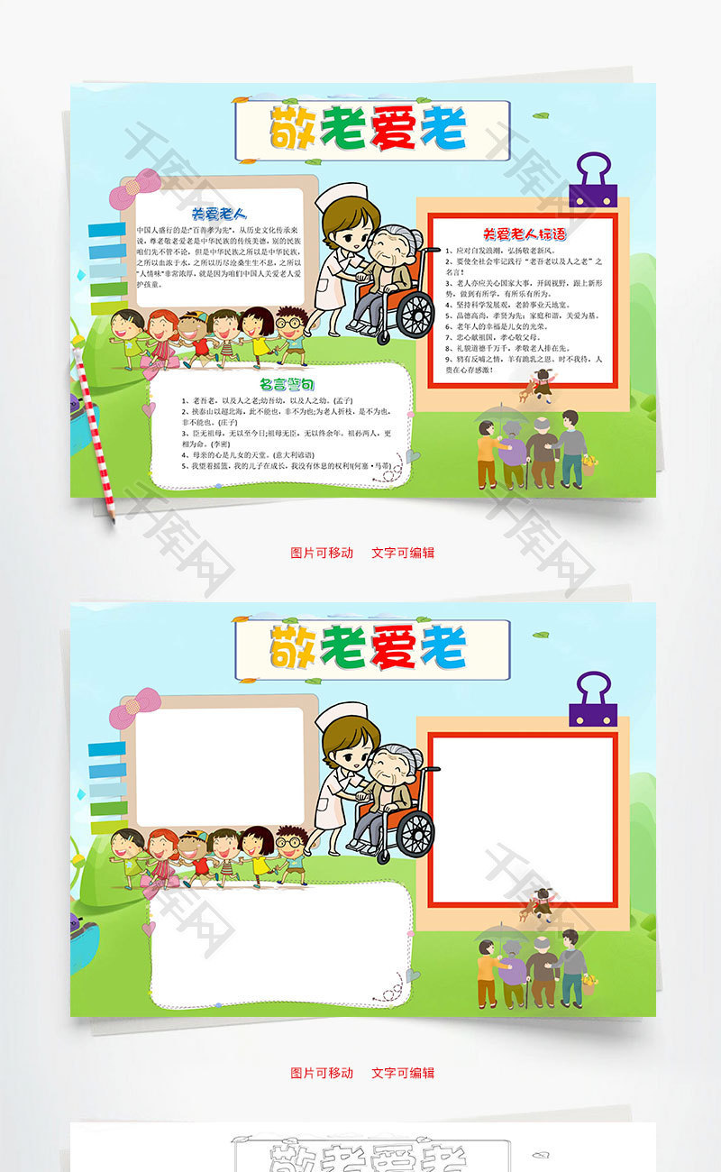 儿童可爱卡通敬老爱老word手抄报模板免费下载_办公简历模板