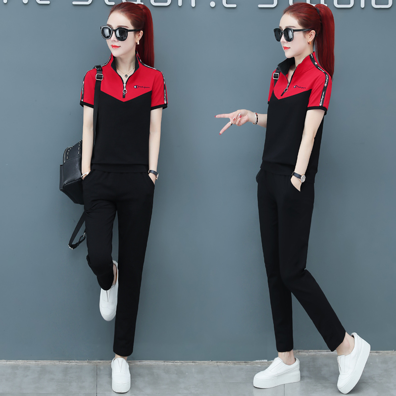 卡闲(kaxes)夏季套装女运动服v领运动套装