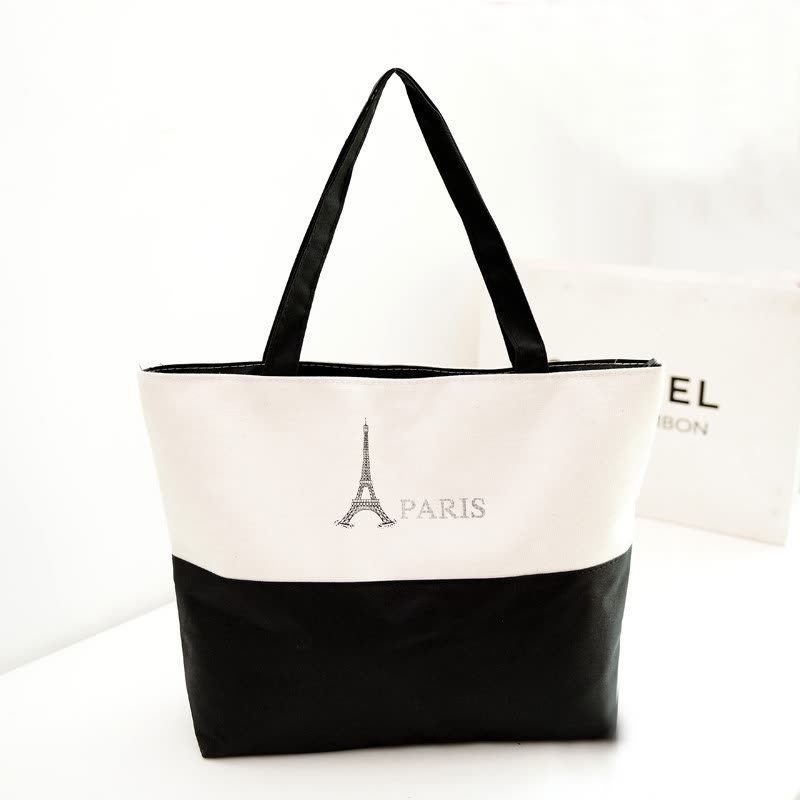 现货批发黑色白色可爱 卡通 帆布包文艺环保购物袋单肩帆布包定做