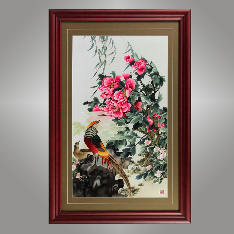 伊飞湘绣家居挂画单面绣锦鸡牡丹玄关装饰