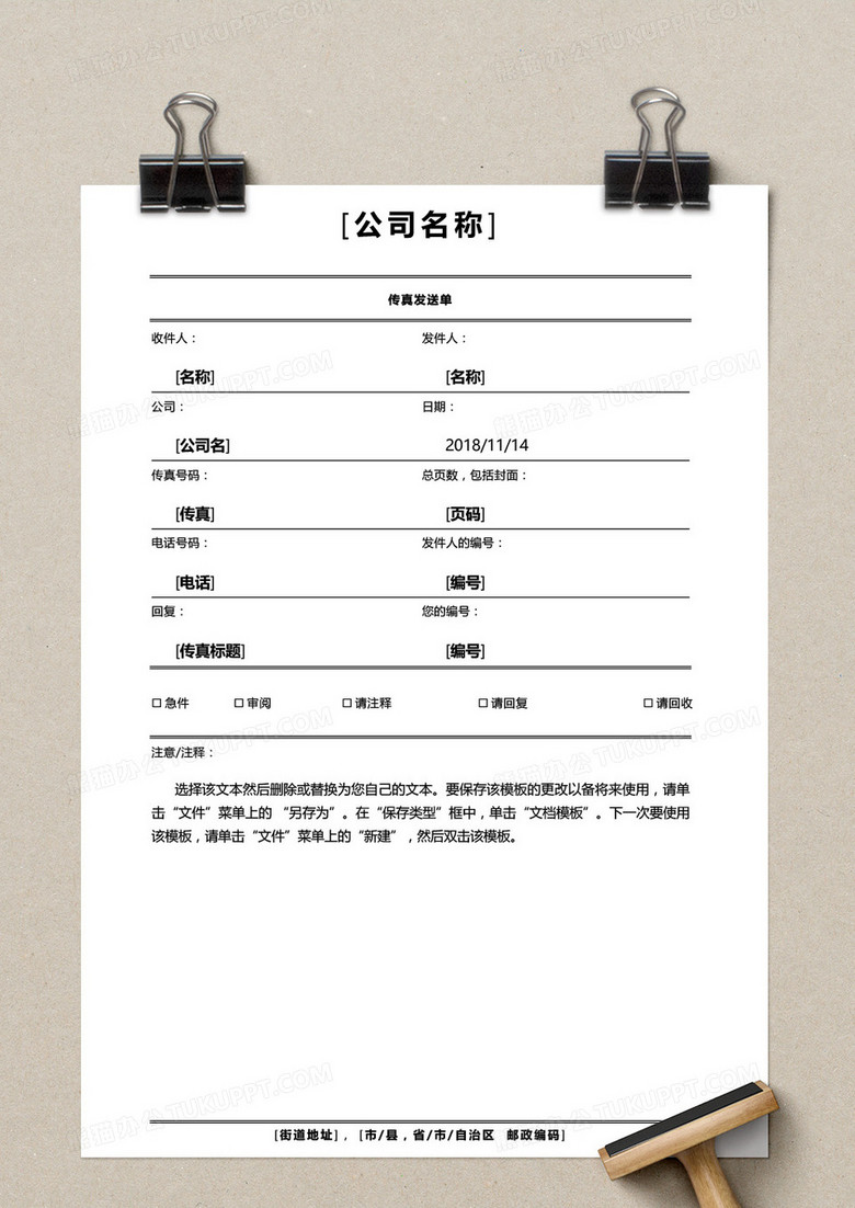 公司传真发送单Word模板下载_docx格式_熊猫办公