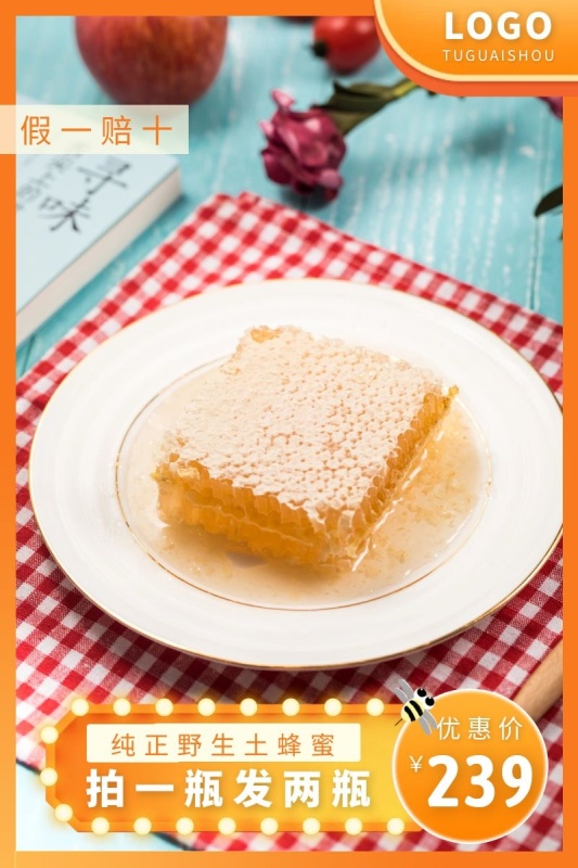 橙金色电商淘宝美食蜂蜜商品主图直通车