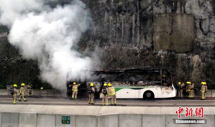 香港屯门公路有旅游巴士着火 往九龙方向