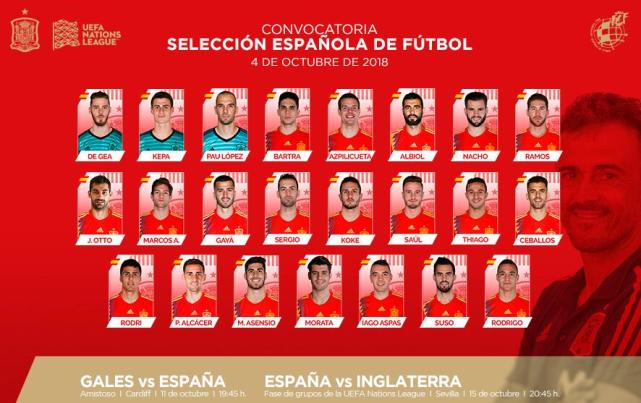 西班牙世预赛大名单:罗贝托和阿森西奥入选
