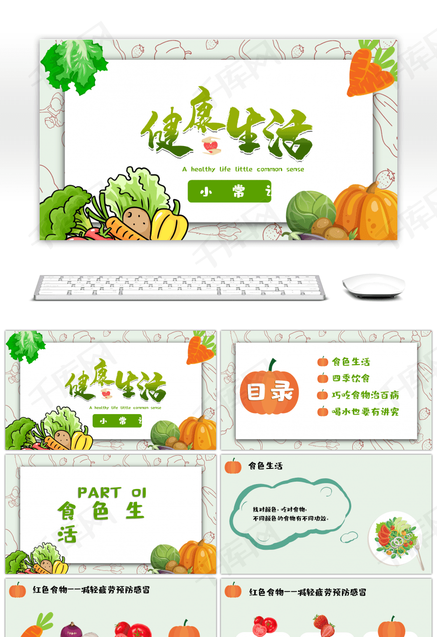 绿色小清新健康生活小常识PPTppt模板免费下载-PPT模板