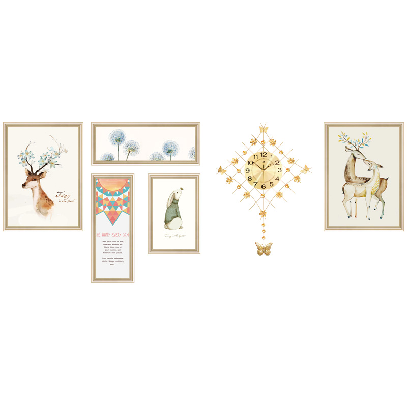 客厅照片墙北欧创意挂钟相框组合挂画沙发背景墙装饰画卧室相片墙