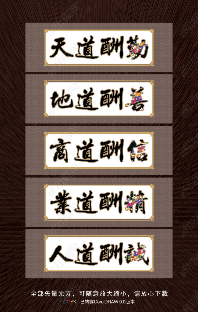 天道酬勤,地道酬善,商道酬信,业道酬精